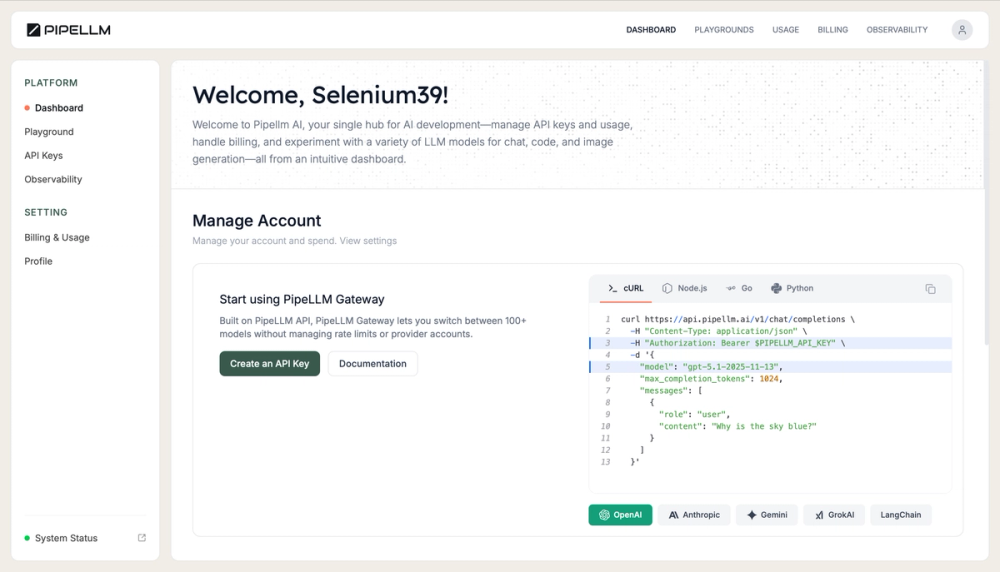 - Model Aggregation: Unified access to multiple AI models through single gateway